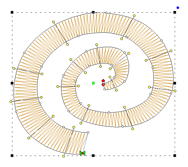 When a shape turns, one side will be longer than the other. This means that one side will have its stitches closer together than the other. Another way to say this is that the density (stitches per inch) inside the turn is higher. When the satin stitch is created, it is given a specific density to maintain – and that is on the outside of the turn, not the inside. The program will do things on your behalf, such as short-stitching, to minimize the impact of the increased density on the inside of turns. But you can also help by looking at what is going on, and making changes to the inclinations so that the density increase is minimized.