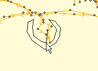 Another way to select stitches is graphically. You can drag a rectangle or a lasso around stitches to select them. You can also use the Brush selection, which selects anything the cursor touches, or with the Ctrl key, the brush can de-select points. Selected stitches can be deleted with the ‘delete’ key or split using the ‘Split’ button.