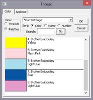 Design creators often need to utilize a palette of given colors. Sometimes these represent a customer’s job requirements, and other times it is merely a matter of needle assignment for the embroidery machine. You can create palettes at any time using the menu Utility->Threads… And you can choose to use any palette as you adjust the color properties.