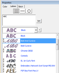 There are however, no stitch properties for these fonts, as they are stitch-files, not our digitized objects. So removing of hidden stitches, underlay and density cannot be changed, for example.