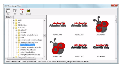 The Browse view on the left side is called a ‘Tree’ control, and it has a ‘Root’ level, which is left-most and ‘branches’ which you can open and close using the ‘+’ and ‘-’. You will also see individual .ZIP files as branches, so you can import designs directly from within those as well.