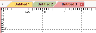 The top level of the program uses what is called a Design Page, which is related to a document or file. The Design Page is stored as a .BE file on your computer, and can contain any number of designs, each composed of any number of objects. You can have as many open Design Pages (or documents) as you like, and each is represented by a tab at the top of the main view.