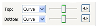 The envelope (containing top and bottom outlines) of the lettering (single or multi-line) can be individually customized. The Envelope Type box and Envelope Slider control the envelope. There is an Envelope Slider control for the envelope top and there is an envelope slider control for the envelope bottom. There are four styles of envelope: Curve, Grow, Peak and Shrink.