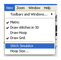 The Stitch Simulator lets you see how the design will sew out by sewing on the screen. It is activated by clicking the Stitch Simulator tool in the View tool bar or selecting Stitch Simulator from the View menu.