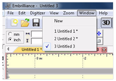 The Main View has a background, a hoop, and rulers along the side and, naturally, the designs you have placed in the Design Page.