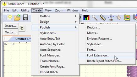 Letters/glyphs are each represented as a design on the design page, as seen in the preceding Publishing Fonts section of this manual. You can create designs and add them following the lettering design described above. How you name them will decide how the system uses them as described in the preceding ‘Naming of Extension Designs’ section.