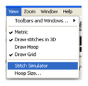 The Stitch Simulator lets you see how the design will sew out by sewing on the screen. It is activated by clicking the Stitch Simulator tool in the View tool bar or selecting Stitch Simulator from the View menu.