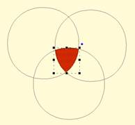 First, we merged three copies of a circle, then used the AND button.