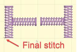 To accomplish this, the topstitching of the branch will be done in a reverse fashion to end up at the exit, as seen in the above image, which shows the letter partially stitched.
