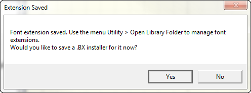 Publishing the extension file saves it for use by the system. When a font is loaded, any extensions found are loaded with it. Font extension files do have some additional data contained within them, so you do need to take the step of publishing. The file itself, however, is a regular .BE working file and it can be opened and edited like any other, even after publishing.