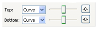 The envelope (containing top and bottom outlines) of the lettering (single or multi-line) can be individually customized. The Envelope Type box and Envelope Slider control the envelope. There is an Envelope Slider control for the envelope top and there is an envelope slider control for the envelope bottom. There are four styles of envelope: Curve, Grow, Peak and Shrink.