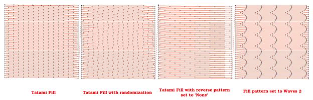 Note: There is also an option of using fill pattern “None” which will emulate a satin. This is for very small areas, where the stitches will not be excessively long, or for fills that are only going to be carved.