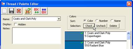 Note: For the purposes of discussion, the term “thread line” and “palette” are considered synonymous, except when discussing the above checkbox.