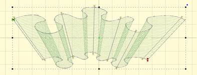 You’ll see that the cap angle is as ‘flat’ as it can be so that the stitching is smooth. For registration purposes, you may want to overlap the cap on top of the entry column. And the exiting column usually is best to be snug against the cap. In the illustration on the left, notice the slight overlap of the left column and the cap – barely a stitch is typical.