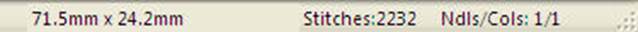 The status bar is located at the bottom of the program window. Size, stitch count and color count information appear on the right side of the status bar. If you have no design selected, then the display will contain information about the entire design page. If you have something selected, then the information contains the word, ‘Selected’ and represents only those selected items.