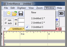 For finer movements (1mm at a click), the selected design element(s) can be nudged using the keyboard arrow keys. To move objects one stitch point at a time (.1mm), hold down the control key while pressing an arrow key.