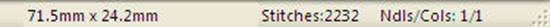To cancel measuring, click again on the Measure button in the toolbar or click the Selection Tool (arrow) in the toolbar. Items that are selected also have their size, stitch count and color count shown in the status bar. If nothing is selected, the size and counts for the entire Design Page will be shown.