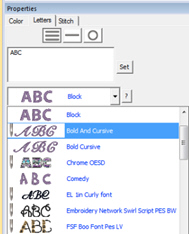 There are however, no stitch properties for these fonts, as they are stitch-files, not our digitized objects. So, removing of hidden stitches, underlay and density cannot be changed, for example.