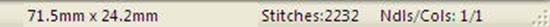 To cancel measuring, click again on the Measure button in the toolbar or click the Selection Tool (arrow) in the toolbar. Items that are selected also have their size, stitch count and color count shown in the status bar. If nothing is selected, the size and counts for the entire Design Page will be shown.