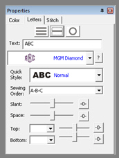 The Letters Property tab provides a number of tools that allow the design to be customized.