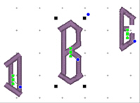 Clicking the center green handle also allows you to change the color of that letter only, leaving the others untouched. Use the Colors page in the Property Sheet to change the letter color, as you would change any color layer in a design.