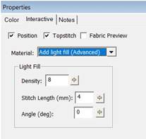 Density, Stitch length and Angle are adjustable in the Light Fill (Advanced).