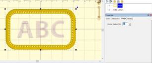 Where a template is used, the same naming convention applies. When a lettering design that’s used in a template is selected, it is not shown as it will appear in the template. This allows for adjustment of character position relative to each other. To see the design in the template, click off it to deselect it.