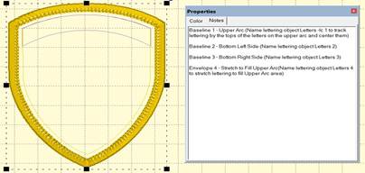 When using templates and baselines, the number of each is required, in order for the program to match the lettering to the correct one. Some designs have multiple placement objects, therefore the Notes tab is used to display the numbers required.