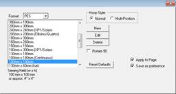 The hoop that you will view in the Main View is chosen for the Design Page using the Preferences Window. See the section under Preferences, called “Hoops.”