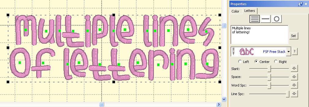 Multi-Line text! Note that the letters are automatically kerned for you. (Kerning is the spacing between each letter.)