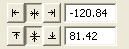 You can precisely position embroidery designs using these buttons. The three buttons on the (top, left) control the display of the x-axis position. There are Left, Center and Right, which means that when you have the Left button set, the display will be of the left edge of the design.